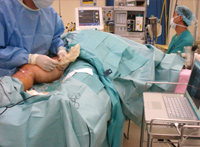- With you lying down ultrasound scan will be used to locate the abnormal vein. The vein is punctured through the numbed skin to introduce a very thin tube (catheter) into the main trunk of the superficial venous system