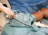 - A fine long tube is introduced into the main trunk of the superficial venous system.